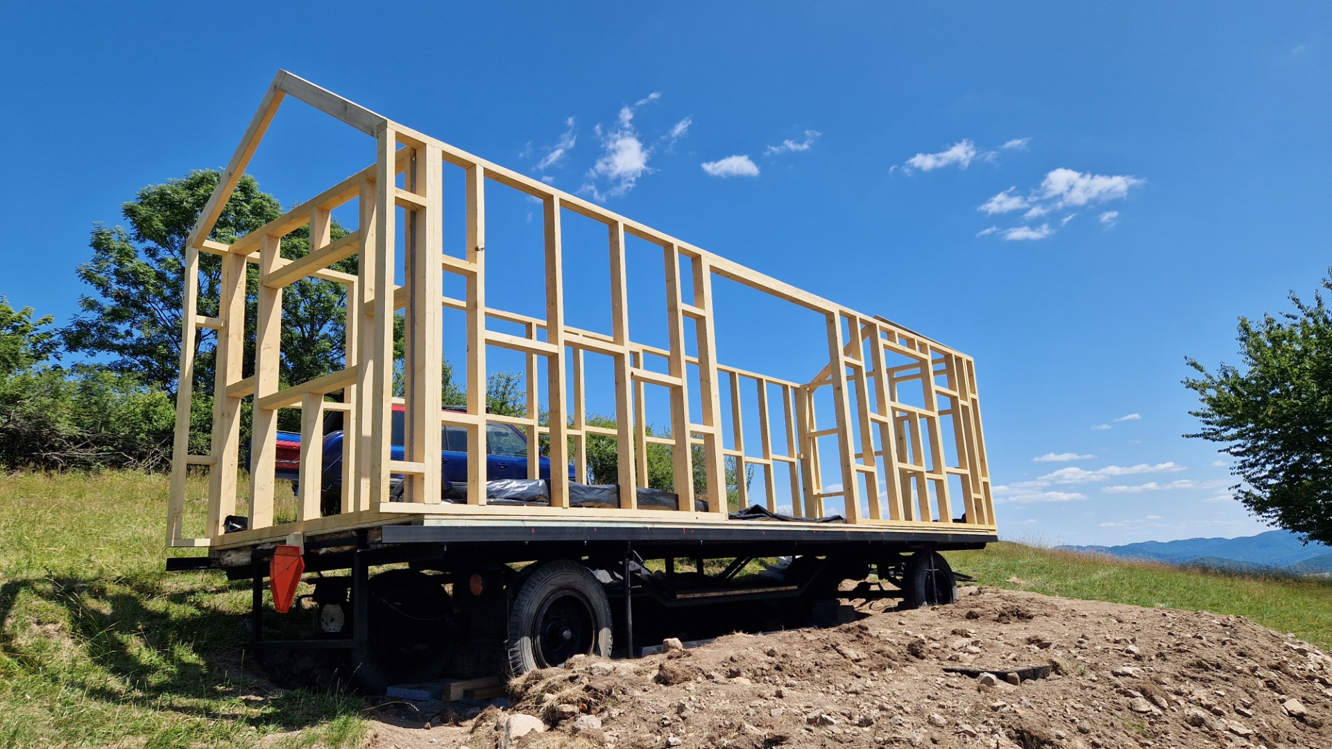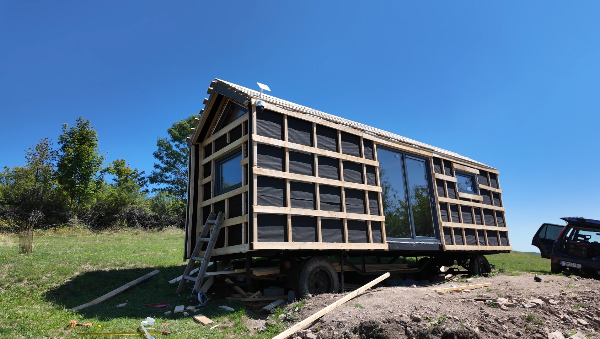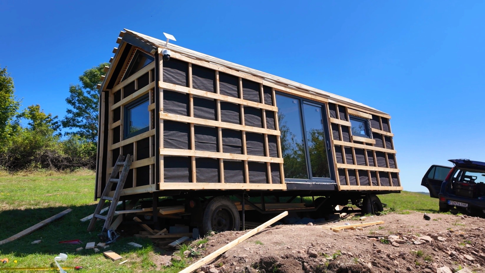 Pamätáte si ešte nato, keď sme na náš dvor dotrepali starý hrdzaví podvozok? Naša chatka na kolesách rástla priamo pred vašimi očami. Prešli sme si spolu každou fázou stavby – od podvozku, cez zatepľovanie až po posledný detail v interiéri.